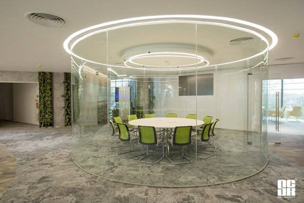Phòng họp của từng bộ phận nhỏ hơn, nhưng cũng rất hiện đại. Mặt kính cường lực trong suốt vừa tạo hiệu ứng không gian mở. Tuy nhiên, vẫn đảm bảo sự riêng tư và cách âm tốt trong quá trình diễn ra cuộc họp.
