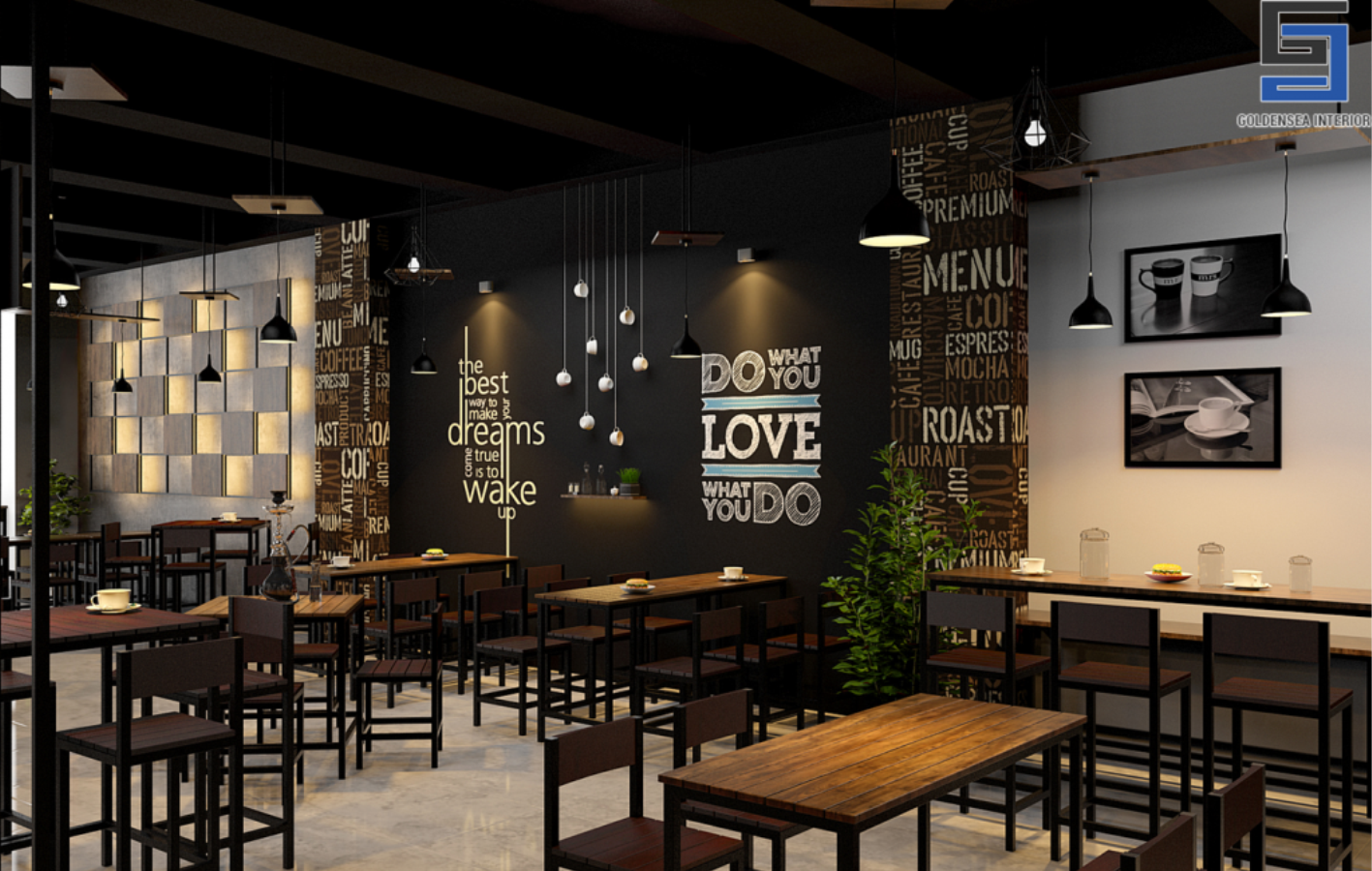 Đây là một không gian ưa thích sự đơn giản. Tông màu nâu của cafe như chiếm lĩnh cả không gian, vừa gợi sự hoài cổ, vừa đem đến cảm giác chắc chắn, mát mẻ. Một thiết kế từ nội thất đều đem đến trang trí đều đem đến cảm giác như cafe ngập ngụa cả không gian.